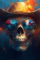 Patriotic Skull in Cowboy Attire Reflects Texan Spirit on Canvas