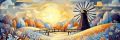 Rustic Charm of San Antonio: Windmill and Wildflowers on Canvas