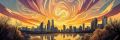 Atmospheric Sunset Over San Antonio's Skyline and Waterway