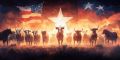 Patriotic Symphony of Longhorns and Stars in a Texan Sunset