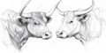 The Ethereal Grace of Dual Bulls in Monochromatic Light and Shadow