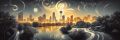 Surreal Sunset Over San Antonio Skyline with Cosmic Portal