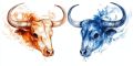 Vibrant Dual Longhorn Portraits Emerge from Swirls of Color