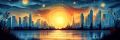 Surreal San Antonio Skyline at Sunset with Artistic Overtones
