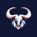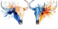 Majestic Blue and Orange Longhorn Skull Graphic Design Art