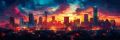 Illuminated Spectrum: A Vibrant Digital Skyline at Night