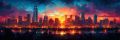 Golden Sunset Over the Urban Horizon: A Panoramic Cityscape Art