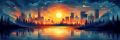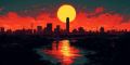 Vibrant Sunset Over San Antonio Riverwalk in Stylized Artwork