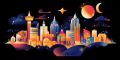 Vibrant San Antonio Skyline at Night in Stylized Illustration