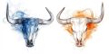 Fire and Ice: Dual Longhorn Skulls in Vivid Artistic Contrast