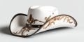 Elegant White Cowboy Hat with Ornate Brown Embroidery Detail