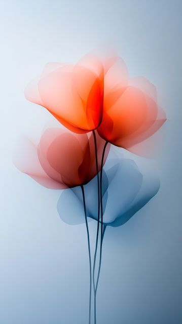 As the morning light embraces the awakening earth, a similar glow seems to emanate from this delicate depiction of a single flower, captured in an ethereal dance of colors. The artwork unveils a flower, rendered through a magnificent interplay of orange and pink hues layered gracefully, each petal seeming to pulsate with life and warmth. Against a serene blue backdrop, the bold strokes give way to a soft and sweeping gradient, evoking a sense of calm and tranquility. This digital creation not only celebrates the natural beauty of florals but also reimagines it through a modern lens. The shadows, captured in cooler tones, add a depth that invites contemplation, creating an engaging contrast with the vibrant warmth of the petals. As a perfect blend of art and technology, this piece speaks to both the heart and the senses, making it a captivating visual feast that enriches any space by infusing it with color and emotion.