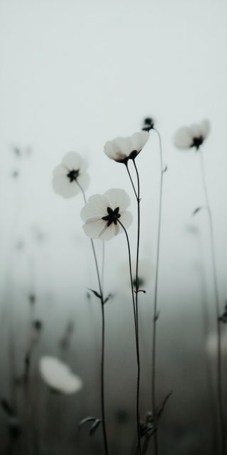 As dawn gently unfurls its light over a mist-laden landscape, a cluster of delicate white flowers emerges as the focal point of this serene artwork. These slender stems, crowned with pristine, almost translucent petals, sway subtly in the quiet morning breeze, their grace untouched by the surrounding fog. The ethereal quality of the flowers is magnified by the soft, diffuse light that seems to hover just at the horizon, blending seamlessly into the grey sky. This image invites the viewer to pause and reflect, offering a moment of calm and a breath of fresh air. The dim backdrop accentuates the simplicity and fragility of the flowers, creating a stark yet harmonious contrast. Such scenes remind us of the fleeting beauty of life and the quiet power of nature that often goes unnoticed. This artwork, with its composition and mood, is a testament to the delicate balance of light and shadow, presence and absence, evoking a sense of peace and introspection.