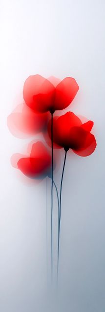 Envelop your senses in the lush tranquility of "Radiant Blooms in a Serene Space," an artwork that speaks volumes through its simplicity and vibrant color palette. Here, three ethereal red flowers stand gracefully, their silhouettes casting a gentle yet profound impact against a creamy, white backdrop. Each petal translucent and glowing, these floral figures seem to both advance and recede, creating a dynamic interplay of depth and light. The striking red hue, varying in intensity, whispers tales of passion, love, and unspoken resilience, inviting viewers to pause and reflect—an invitation to explore emotions often left unspoken. The elegance of the artwork elevates any space, transforming it into a meditative sanctuary where one can both lose and find oneself amidst the petals’ soft, pervasive charm. Each stem, slender and strong, promises continuity and growth, symbolizing life's delicate balance. Whether in the gentle fade of color or in the crisp outlines that define form and space, this piece casts a lasting spell of serenity and introspection. The play of shadow and light, crafted with subtle sophistication, ensures that each viewing angle offers a unique perspective, engaging the mind's eye. Suitable for an array of interior designs, from minimalist to modern, this artistic creation not only decorates a room but also infuses it with a soulful essence. Ideal for those seeking to imbue their surroundings with a sense of peace and aesthetic pleasure, this artwork awaits to transform your everyday environment into a realm of artistic reverie.