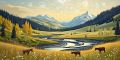 Enchanted Autumn Meadow with Majestic Cow and Golden Sun