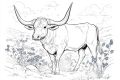 Elegant Monochrome Texas Longhorn Amid Blooming Flowers